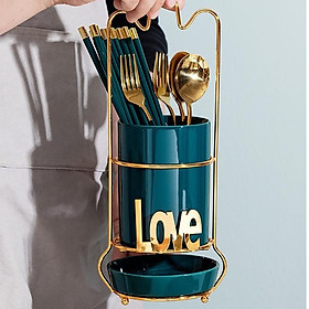 ✨Ống đựng đũa chất liệu sứ khung hợp kim cao cấp | HŨ SỨ CÓ KHAY HỨNG NƯỚC ĐỰNG ĐŨA KHUNG INOX TẠO HÌNH LOVE YOU