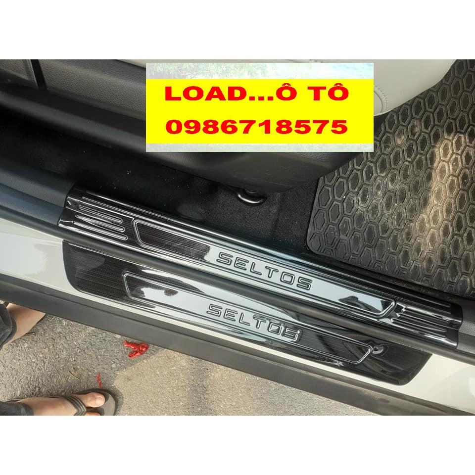 Ốp Bậc Cửa, Nẹp Bước Chân Trong, Ngoài KIA Seltos 2023-2020 Vân Carbon Đen Cao Cấp