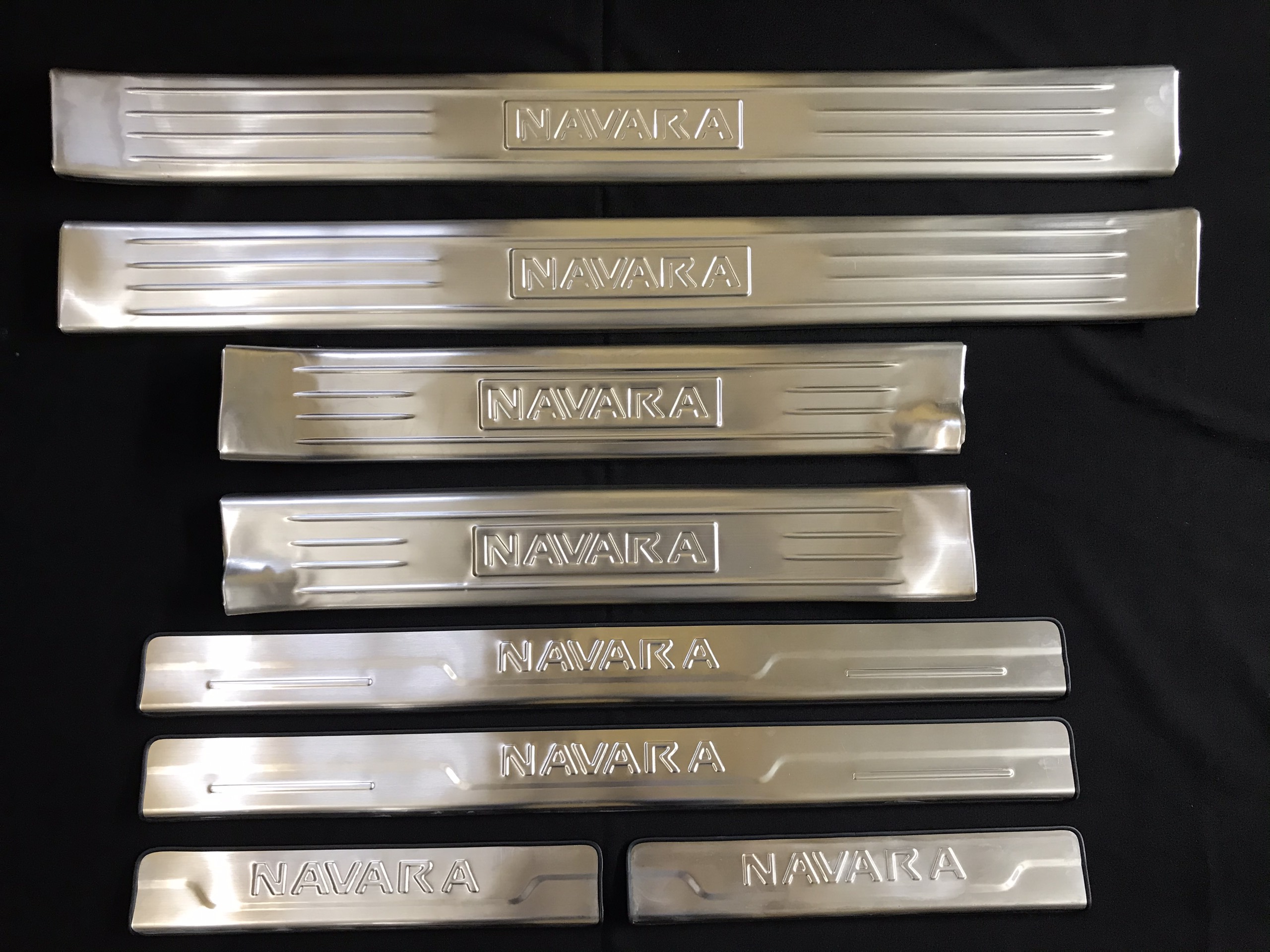 Bộ Ốp Bậc Cửa Trong Ngoài Xe Nissan Navara 2015-2020, chất liệu Inox có tác dụng che chắn và bảo vệ cho bậc chân lên xuống hạn chế những trầy xước hoặc hư hỏng cho bề mặt trong quá trình sử dụng xe.