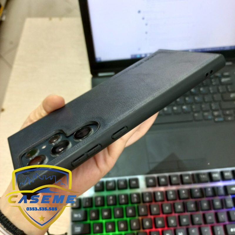 Phần lưng thiết kế vân da, rất giống da thật, cầm bám tay, không bám mồ hôi, vân tay, không mờ, không ố vàng trong quá trình sử dụng.