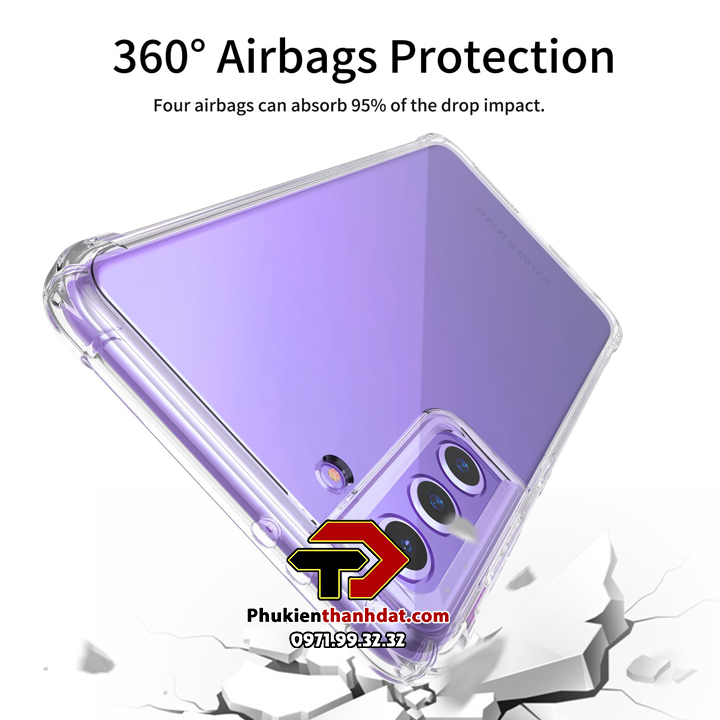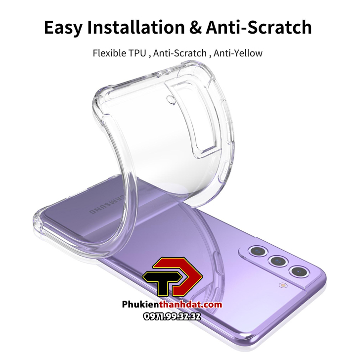 Ốp lưng dẻo trong chống sốc SamSung được làm từ chất liệu TPU dày 0.9 mm, mềm dẻo, trong suốt, có độ đàn hồi cao, có thể bóp lại, cuộn lại mà không biến dạng. Ốp lưng được thiết kế với 4 góc dày dặn hơn (hầu hết khi rơi máy các góc sẽ va chạm đầu tiến), kết hợp với phần khung viền từ nhựa dẻo TPU cao cấp khá dầy dặn (~1mm).
