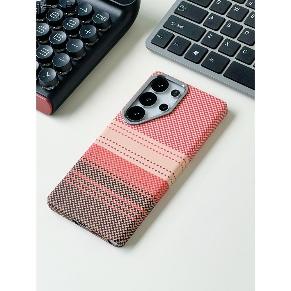 Ốp lưng nhựa cứng vân carbon , thổ cẩm có vòng hỗ trợ sạc không dây từ tính tiện lợi cho máy Samsung Galaxy S25 Ultra