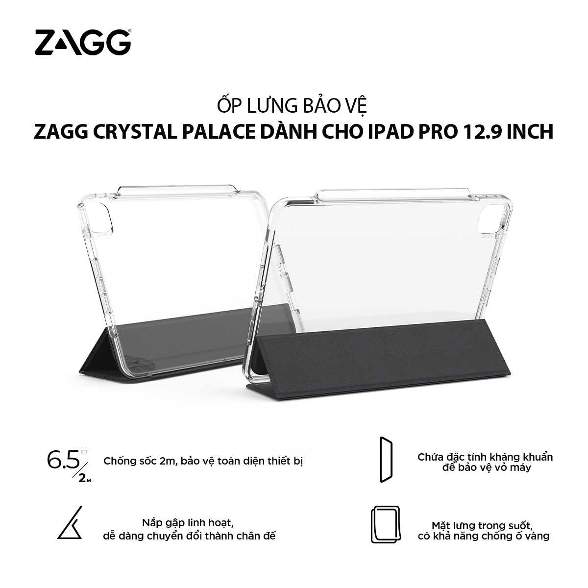 - Ốp lưng Zagg Crystal Palace Folio i-P.ad Pro 12.9