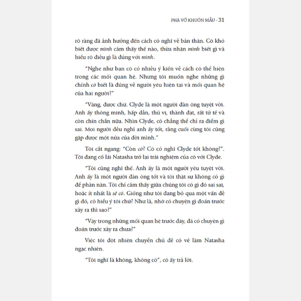 • Về tác giả: Vienna Pharaon là một nhà trị liệu hôn nhân và gia đình được cấp phép và là một trong những chuyên gia được săn đón nhiều nhất ở New York trong lĩnh vực này. Cô nhận bằng thạc sĩ khoa học về trị liệu hôn nhân và gia đình của Đại học Northwestern và được đào tạo chuyên sâu tại Family Institute, Bette D. Harris Family & Child Clinic. Pharaon đã xuất hiện trên The Economist, Vice và Motherly, cô còn dẫn các chương trình hội thảo trên Peloton, Netflix và nhiều nơi khác.