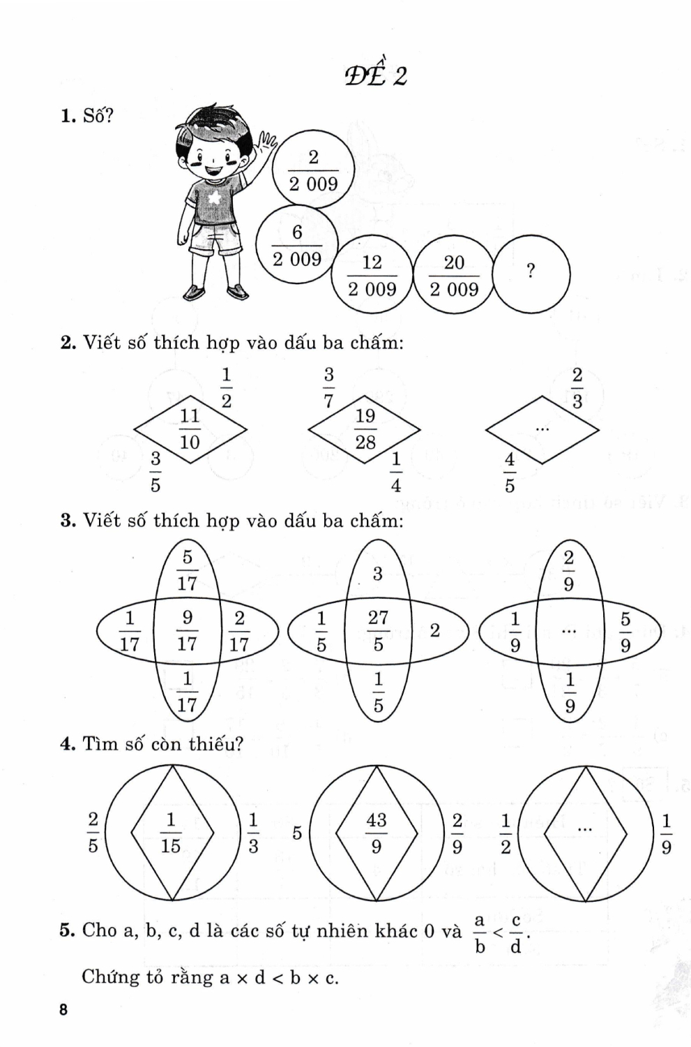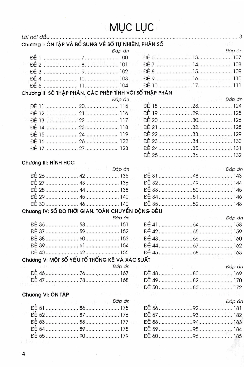 Mua tại TiktokPhát Triển Trí Thông Minh Toán 5 (Dùng Chung Cho Các Bộ SGK Hiện Hành) Nhằm giúp quý thầy, cô, phụ huynh có thêm tư liệu hướng dẫn con em và để các em học sinh học tốt môn Toán lớp 5 theo Chương trình giáo dục phổ thông mới (ban hành năm 2018, bắt đầu thực hiện ở lớp 5 từ năm học 2024 2025), nhóm tác giả đã biên soạn cuốn sách: PHÁT TRIỂN TRÍ THÔNG MINH TOÁN 5. Nội dung sách được biên soạn không ngoài mục đích cùng quý thầy, cô và phụ huynh giúp các em học sinh lớp 5 rèn luyện khả năng phán đoán, suy luận, từ đó giúp các em học giỏi và yêu thích môn Toán hơn. Cuốn sách được trình bày thành hai mục: A. ĐỀ BÀI Gồm 6 chương là: Chương I: Ôn tập và bổ sung về số tự nhiên, phân số Chương II: Số thập phân. Các phép tính với số thập phân Chương III: Hình học Chương IV: Số đo thời gian. Toán chuyển động đều Chương VI: Ôn tập Chương V: Một số yếu tố thống kê và xác suất B. ĐÁP ÁN Trong mục này, chúng tôi đưa ra các lời giải mang tính chất gợi ý. Trong quá trình sử dụng cuốn sách, các em học sinh có thể tìm thêm được những lời giải khác và đôi khi là các đáp số khác với sự gợi ý. Dù rất cố gắng, song trong quá trình biên soạn khó tránh khỏi những thiếu sót. Tác giả mong nhận được sự quan tâm và những ý kiến đóng góp chân thành của quý thầy, cô và quý độc giả để cuốn sách sẽ được hoàn thiện hơn trong lần tái bản sau.
