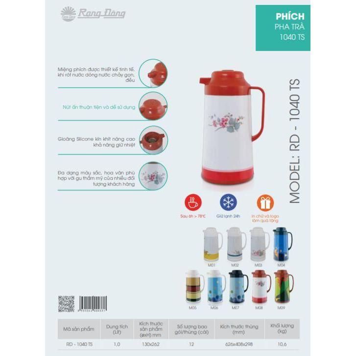 Dung tích: 2 lít Vật liệu: thân nhựa, vai nhựa Nhiệt độ sau 6h: ≥ 80˚C Gioăng: Silicon Phích Đựng Nước Rạng Đông Độ giữ nhiệt cao sau 6 giờ ≥ 80°C Sử dụng gioăng