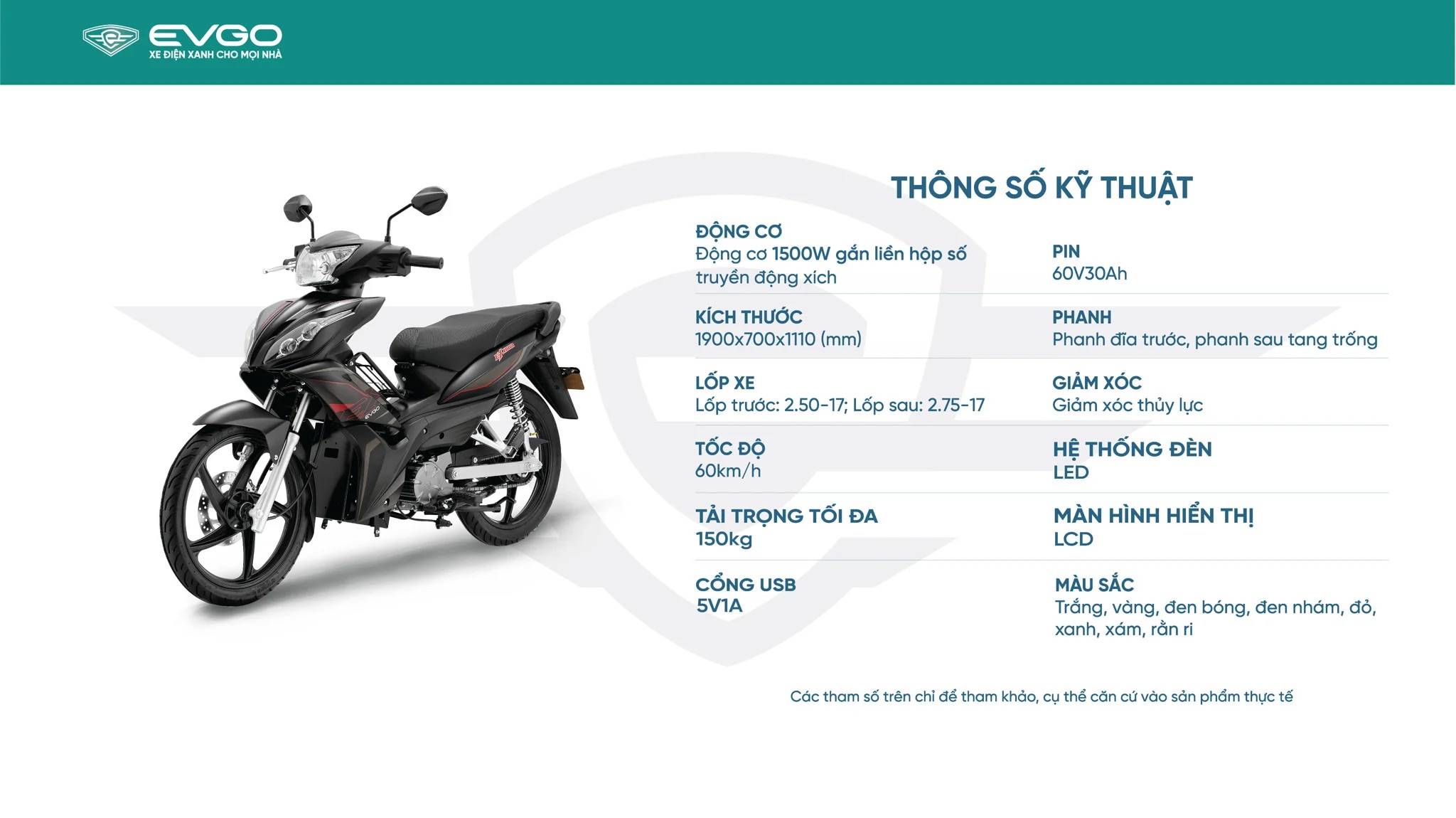 EVGO Ex100 xe điện có cấp số khá giống Exciter 135 đã có giá bán
