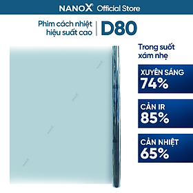 Mua tại TiktokNanoX là thương hiệu phim cách nhiệt ô tô và nhà kính tập trung Chống nóng chuyên sâu – Giải pháp UV – Bảo vệ sức khỏe. Sở hữu hai nền tảng công nghệ Nano Ceramic và Dual Nano Ceramic vượt trội, NanoX tự hào với các dòng phim cách nhiệt mạnh mẽ, ngăn chặn tuyệt đối những tia gây hại, mang đến không gian mát dịu, góp phần làm dồi dào hơn sức khoẻ thể chất lẫn tinh thần. Thông tin chung về Phim cách nhiệt NanoX Diamond View D80