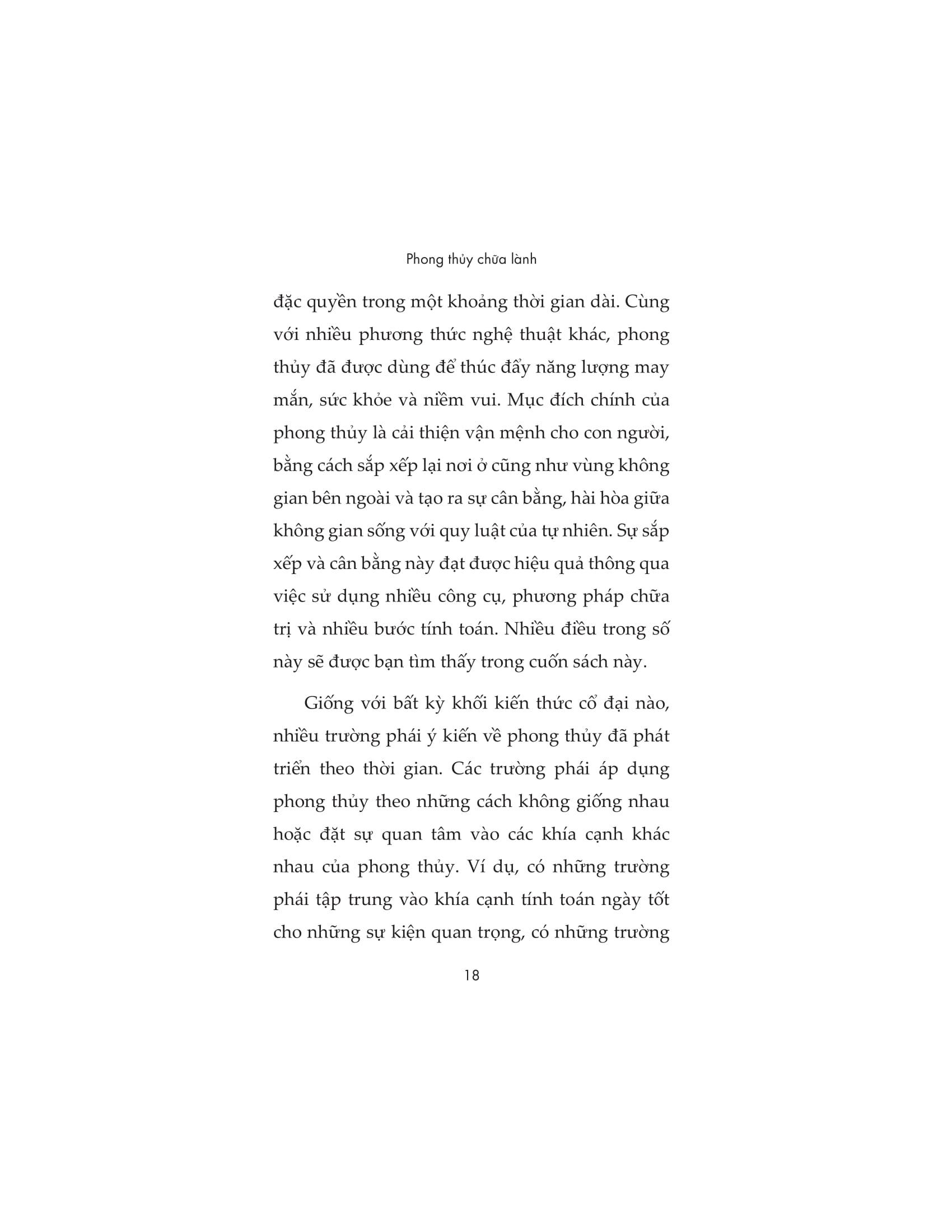 Cuốn sách này sẽ cung cấp cách giải thích hiện đại về trí tuệ cổ xưa, được trình bày với những lời khuyên và hướng dẫn cách sử dụng không gian để nuôi dưỡng sức sống trong bạn.