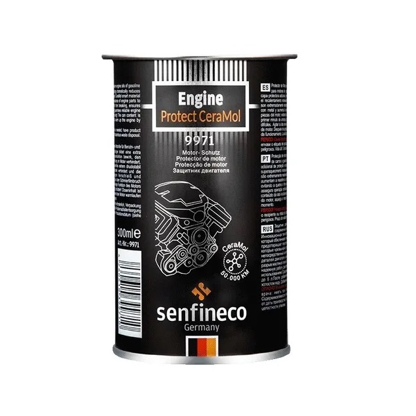 Phụ Gia Động Cơ Với Chất Ceramol Senfineco 9971 – 300ML Engine Protector CeraMol (Cao Cấp)   Phụ Gia động cơ với chất Ceramol Senfineco 9971 – 300ML có hiệu quả cao cho các loại dầu động cơ hiện đại của xe ô tô chạy xăng và dầu diesel. Bảo vệ vòng pít-tông và ta-rô thủy lực chống mài mòn và ăn mòn do dư lượng đốt cháy nhiên liệu tích cực. Sự ra đời của công nghệ CeraMol giúp giảm đáng kể ma sát và hiện tượng quá nhiệt không cần thiết trong động cơ. Việc sử dụng vật liệu thông minh CeraMol ngăn cản sự tiếp xúc trực tiếp giữa kim loại với kim loại và tăng khả năng chống mài mòn của các bộ phận động cơ và ăn mòn ở nhiệt độ cao. Ngăn màng dầu bị vỡ, đảm bảo điều kiện ma sát thuận lợi, giảm tiêu hao nhiên liệu và đảm bảo động cơ hoạt động đáng tin cậy trong các điều kiện khó khăn. Sản phẩm này có thể trộn với bất kỳ loại dầu nào và có thể áp dụng cho bất kỳ động cơ xăng và diesel nào có bộ chuyển đổi xúc tác, bộ tăng áp và không có, cả trong vận tải hành khách và thương mại.