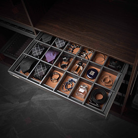 ✨Phụ kiện của tủ áo (Kệ để đồ trang sức ray giảm chấn có vách ngăn, bề mặt bọc da dòng đương đại Grey mã GW001.800/ GW001.800A)