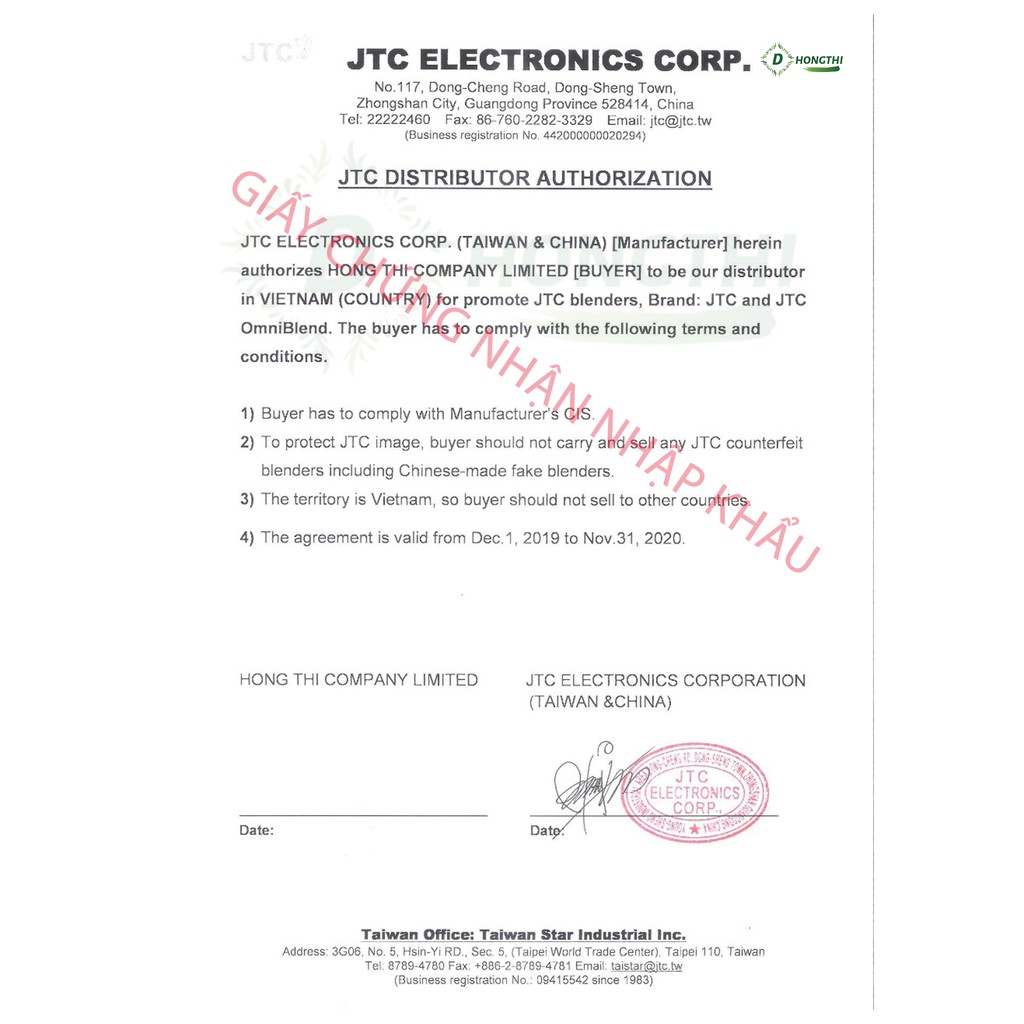Công ty TNHH Một Thành Viên Hồng Thị là nhà nhập khẩu và phân phối, cung cấp các sản phẩm, thiết bị máy móc pha chế đồ uống của các thương hiệu: JTC Omniblend, Kayser, Mehen, D One Milk Tea Creamer. Địa chỉ: Tầng trệt, Tòa nhà Standard Factory B, Đường Tân Thuận, KCX Tân Thuận, Phường Tân Thuận Đông, Quận 7, Thành phố Hồ Chí Minh.