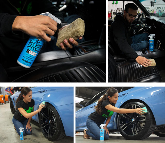 • Tạo độ bóng sâu và bền cho cao su, plastic, nhựa, lốp xe, bảng điều khiển và ngay cả da (giả)