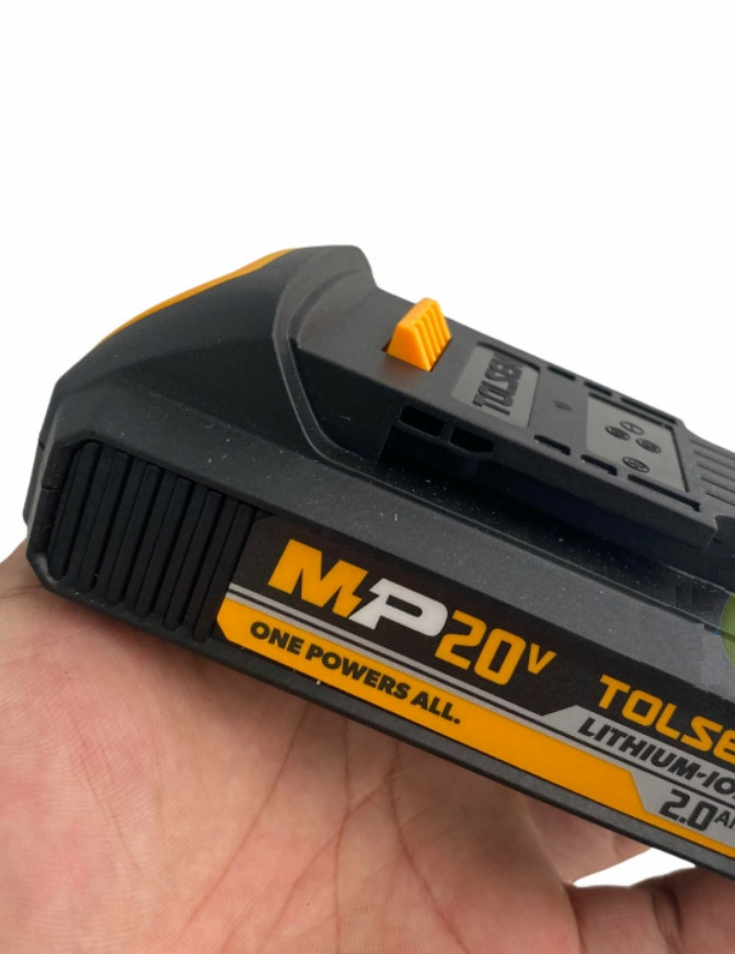 Các công cụ TOLSEN tập trung vào việc chế tạo các dụng cụ cầm tay chất lượng chuyên nghiệp và các sản phẩm phần cứng liên quan. Tất cả các sản phẩm của TOLSEN đều được kiểm soát chặt chẽ ở mọi bước trong quá trình thiết kế, sản xuất, đóng gói và kiểm soát chất lượng. Các công cụ TOLSEN tin rằng các công cụ chất lượng đề cập đến khả năng sử dụng, hiệu quả và hiệu suất. Khác với thị trường OEM, ưu điểm của các công cụ TOLSEN Giá cả phải chăng, Chất lượng đáng tin cậy, Có sẵn hàng, Giao hàng nhanh chóng, không hạn chế moq, Phạm vi sản phẩm - Chúng tôi cung cấp đầy đủ dụng cụ cầm tay, sản phẩm bao gồm dụng cụ cầm, dụng cụ cơ khí, dụng cụ buộc chặt, dụng cụ nổi bật, dụng cụ cắt, dụng cụ đo, dụng cụ vẽ, vật phẩm PPE, phụ kiện dụng cụ điện, túi & dụng cụ cách điện, Thông số kỹ thuật -Điện áp: 20V -Pin 2.0Ah -Đèn LED báo nguồn pin -Tương thích với tất cả các công cụ không dây -TOLSEN MP20V -Phê duyệt CE -Bộ sạc tương thích: 87485/87481/87484 -Đóng gói: hộp màu