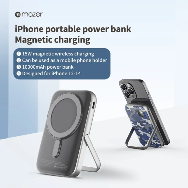 ✨Pin Dự Phòng Không Dây MAZER MagAir16 10000mAh Smallest Có Nam Châm Từ Tính Đèn Tích Hợp Chân Đứng Bảo Hành 2 Năm Hàng Chính Hãng
