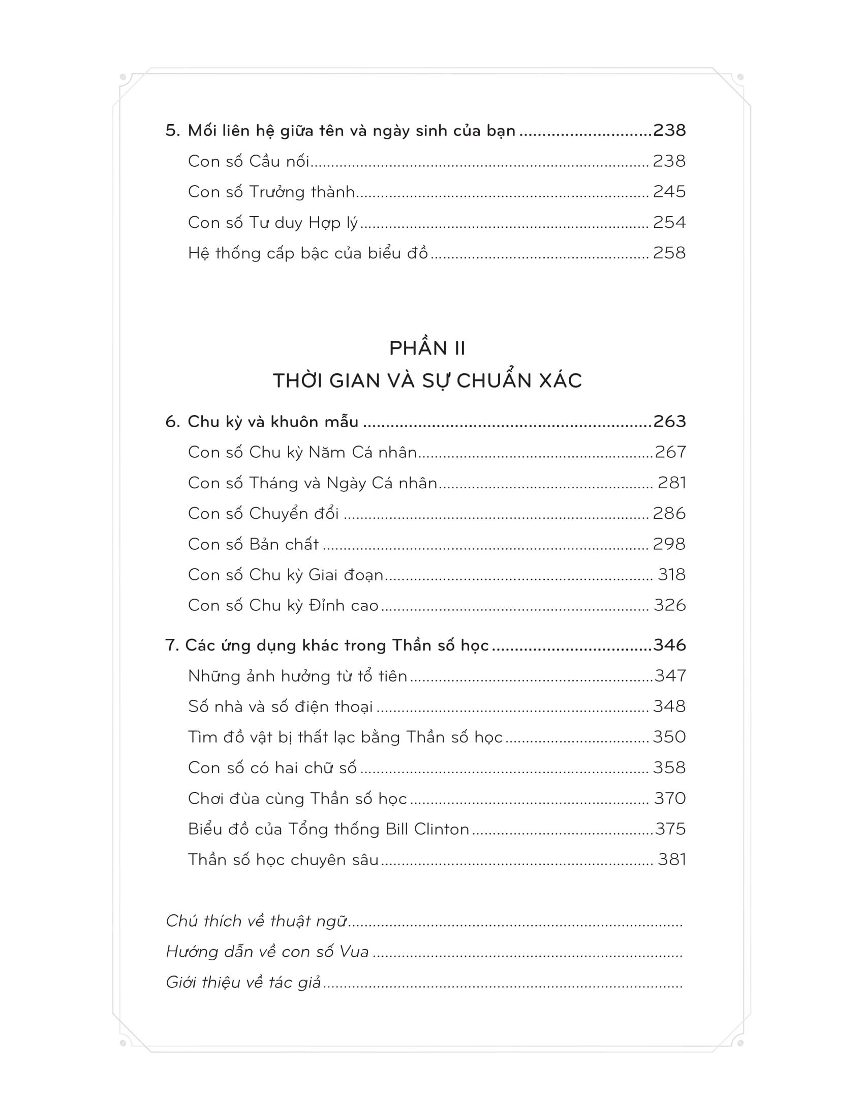 Không có gì là ngẫu nhiên, và những con số cũng vậy. Những con số xuất hiện trong ngày sinh của bạn, xung quanh bạn, trong những giấc mơ,… đều sẽ tiết lộ cho bạn thông tin sâu sắc về tính cách, sứ mệnh, các mối quan hệ và hành trình phát triển của chính bạn. Trong cuốn sách 10 phút tự học Thần số học mỗi ngày, nhà Thần số học Novalee Wilder mang đến một cái nhìn cô đọng về Thần số học phương Tây – từ nguồn gốc cổ xưa đến ứng dụng hiện đại. Bạn sẽ được hướng dẫn từng bước tính toán các chỉ số cốt lõi dựa trên các con số từ 1 đến 9, từ đó khám phá tính cách, hiểu được những bài học cuộc đời quan trọng, xác định mục tiêu cá nhân… cũng như khám phá khái niệm “rung động tên gọi”, công cụ Numeroscope – “vũ khí tối thượng” của một nhà Thần số học. Chỉ cần 10 phút mỗi ngày, bạn sẽ dần làm chủ ngôn ngữ huyền bí của các con số và đón nhận những thông điệp từ vũ trụ. Tham khảo các cuốn sách cùng bộ: 10 phút tự học Tarot mỗi ngày, 10 phút tự học giải mã giấc mơ mỗi ngày.