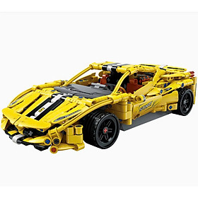 Mua tại TiktokQMAN - 91007 Bộ đồ chơi xếp hình mô hình xe Ô tô màu vàng đi bão, xe đua tốc độ (KT 26.7x13.8x8.7cm)