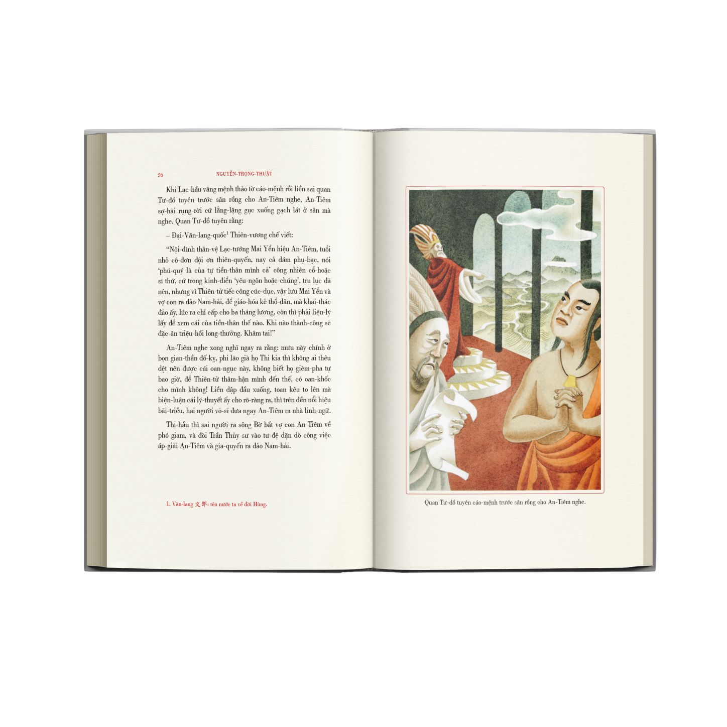 Phần minh họa trong sách được thực hiện bởi họa sĩ Tạ Huy Long, người nổi tiếng với những tác phẩm mang đậm dấu ấn dân gian, lịch sử. Họa sĩ dường như đã tiếp nối vọng âm huyền sử từ thời thượng cổ mà tác giả Nguyễn Trọng Thuật khơi gợi trong cuốn tiểu thuyết. Mười hai bức minh họa màu nước đưa bạn đọc ngược dòng thời gian về với thời đại của những thần thoại, truyền thuyết, ngắm nhìn buổi bình minh của dân tộc Việt qua nét vẽ tài hoa của một trí tưởng tượng bay bổng.