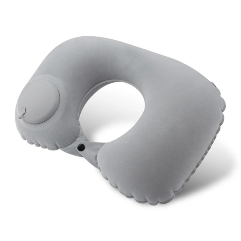 Gối Hơi Chữ U Du Lịch Có Dụng Cụ Bơm Ấn Tự Động Tiện Lợi