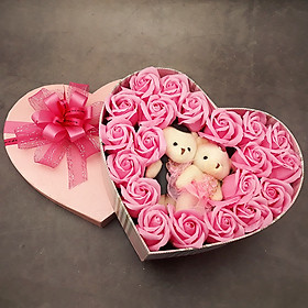 ✨Quà tặng sinh nhật, 8/3 cho bạn gái, vợ - hoa hồng sáp hộp tim 2 gấu, màu hồng - H15H