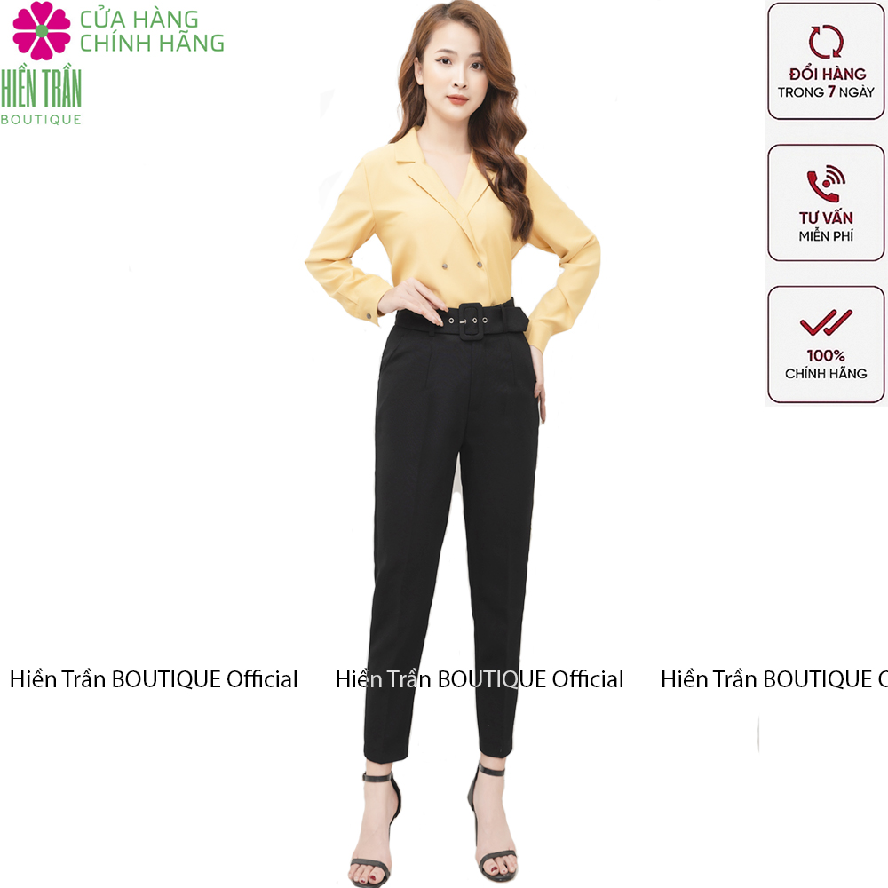✨Quần baggy nữ Hiền Trần BOUTIQUE cạp cao đai khuyên lỗ tháo rời cá tính chất vải cao cấp form dáng công sở
