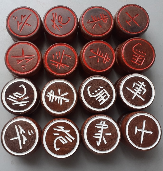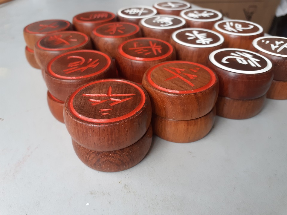 mặt quân cờ tướng gỗ trắc được trạm khắc quân bằng máy lase, khắc một mặt có thể chơi được cờ úp rất đẹp