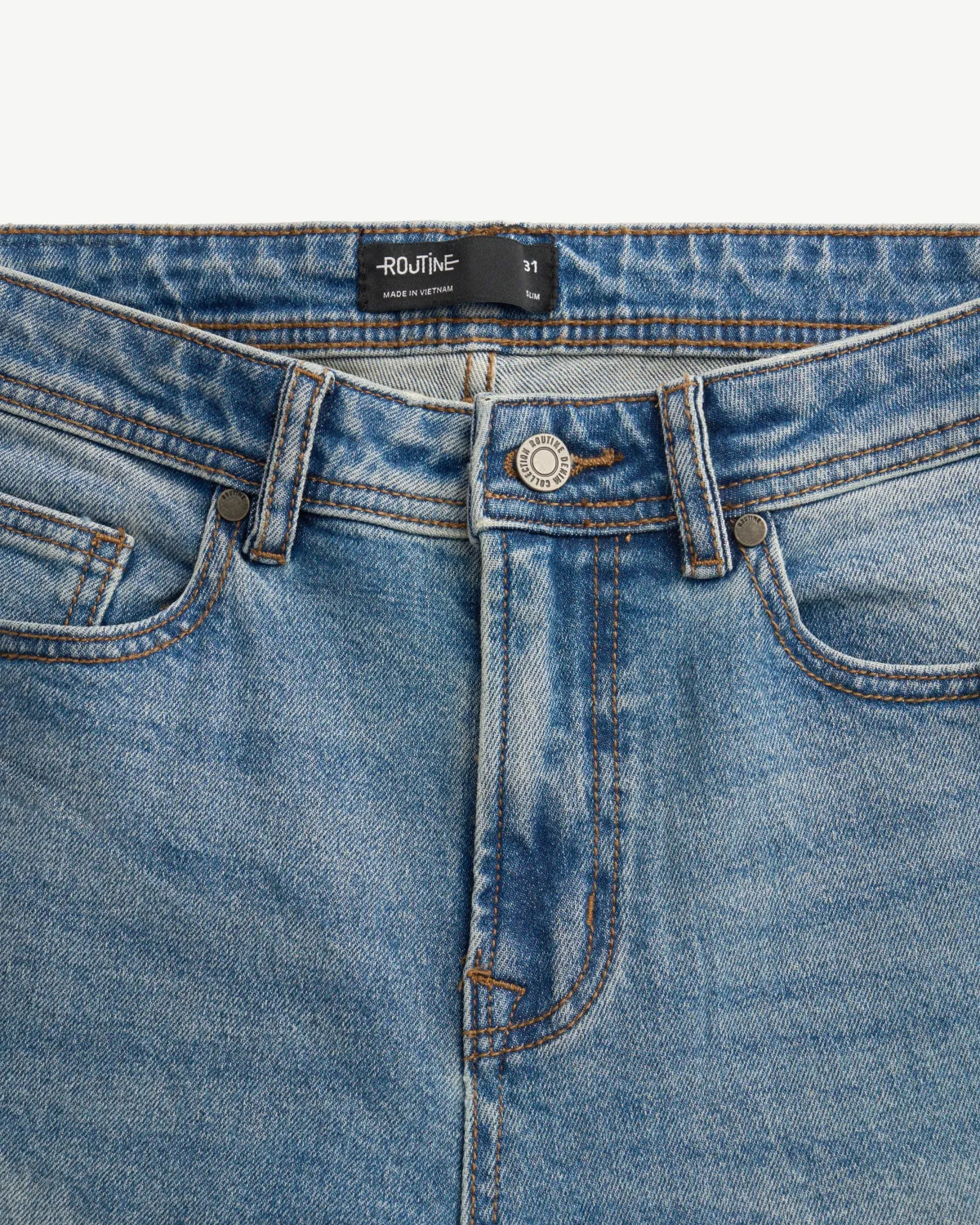 Quần Jean Nam ROUTINE Ống Ôm Xanh Trơn Cotton Spandex Form Slim - 10S24DPA004R1 | ROUTINE CÀ MAU ĐẶC ĐIỂM NỔI BẬT Nhóm sản phẩm Quần Jean Form dáng Slim Giới tính Nam Chất liệu
