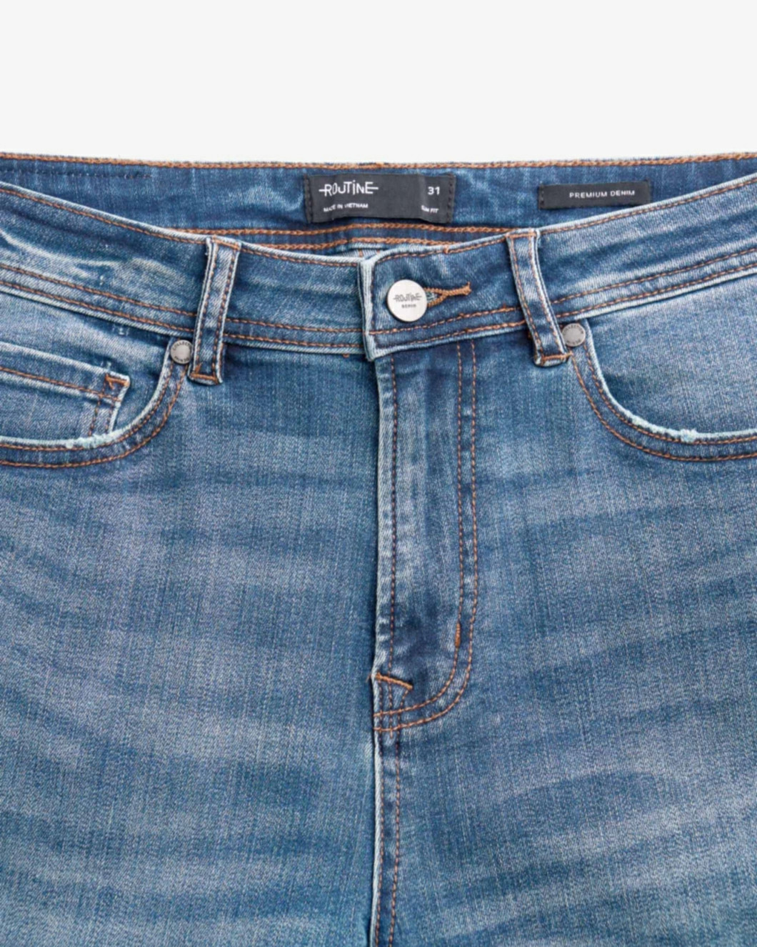 Quần jeans nam trơn ROUTINE Form Slim Premium màu Xanh INDIGO - ROUTINE 10F23DPA012P ĐẶC ĐIỂM NỔI BẬT Nhóm sản phẩm Quần Jean Form dáng Slim Giới tính Nam Sản phẩm này là tài sản