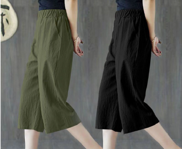THÔNG TIN SẢN PHẨM: - Sản phẩm: Quần dài nữ - Chất liệu: Linen - Đặc điểm: Ống rộng, Đũng ngắn, Lưng thun - Kích thước: M, L, XL, 2XL - Màu sắc: Trắng,Đen,Be,Muối