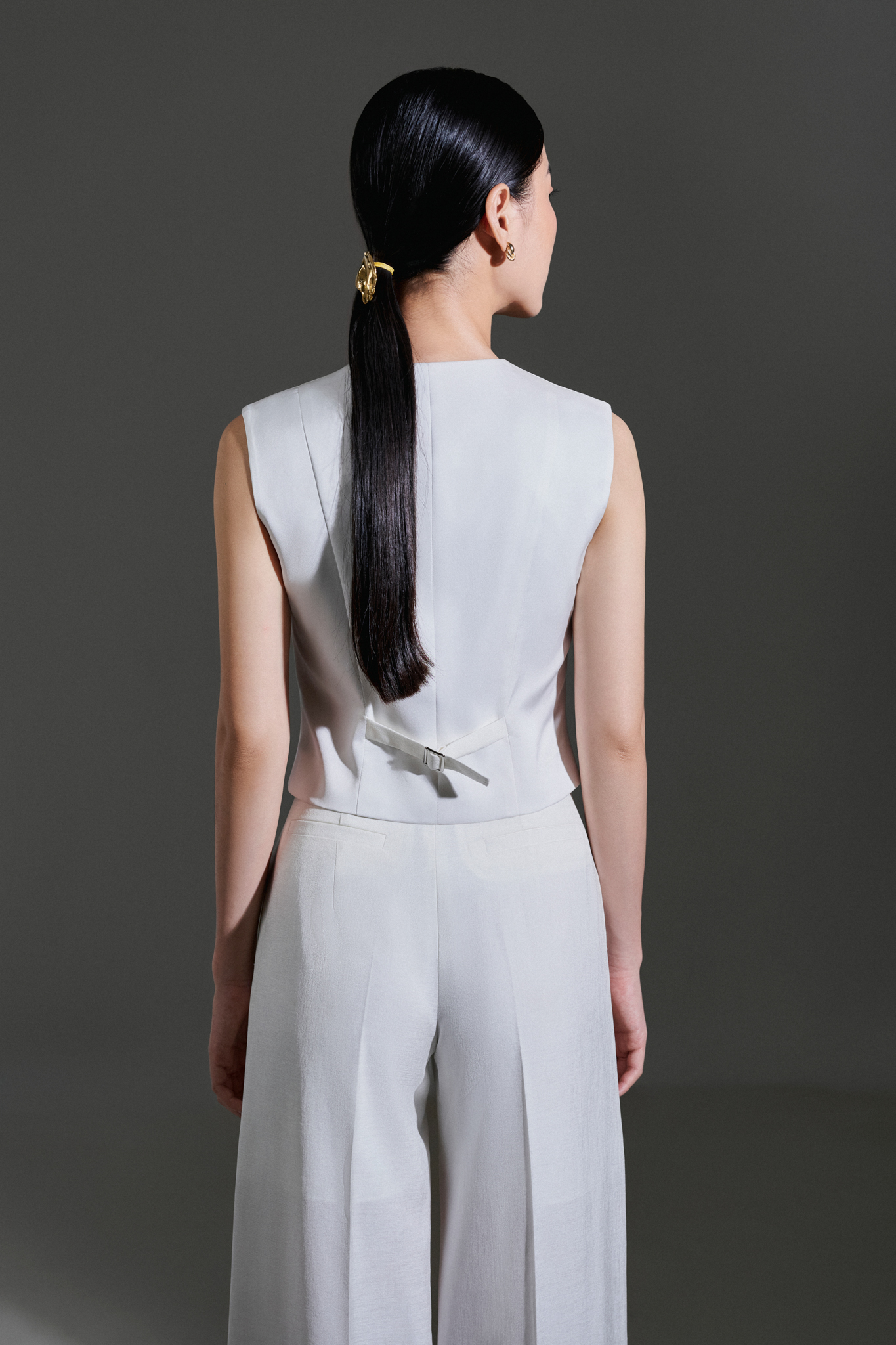1. Thông tin sản phẩm: VALEN ELOISE - PHONG CÁCH THỜI TRANG CHỈN CHU VÀ CHUYÊN NGHIỆP Áo gile Valen form ôm, phối cùng quần Eloise ống suông cạp cao xếp ly giúp che