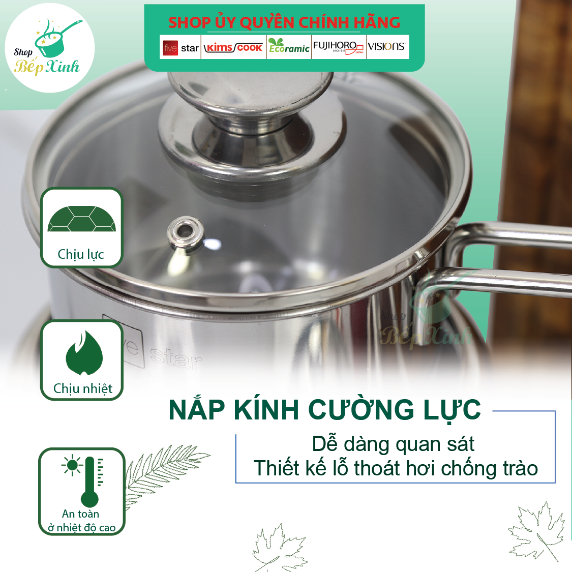 Nồi quánh bột chống dính Inox 3 đáy Fivestar 12cm/ 14cm nắp kính dùng được bếp từ Zalo 0816 505 655