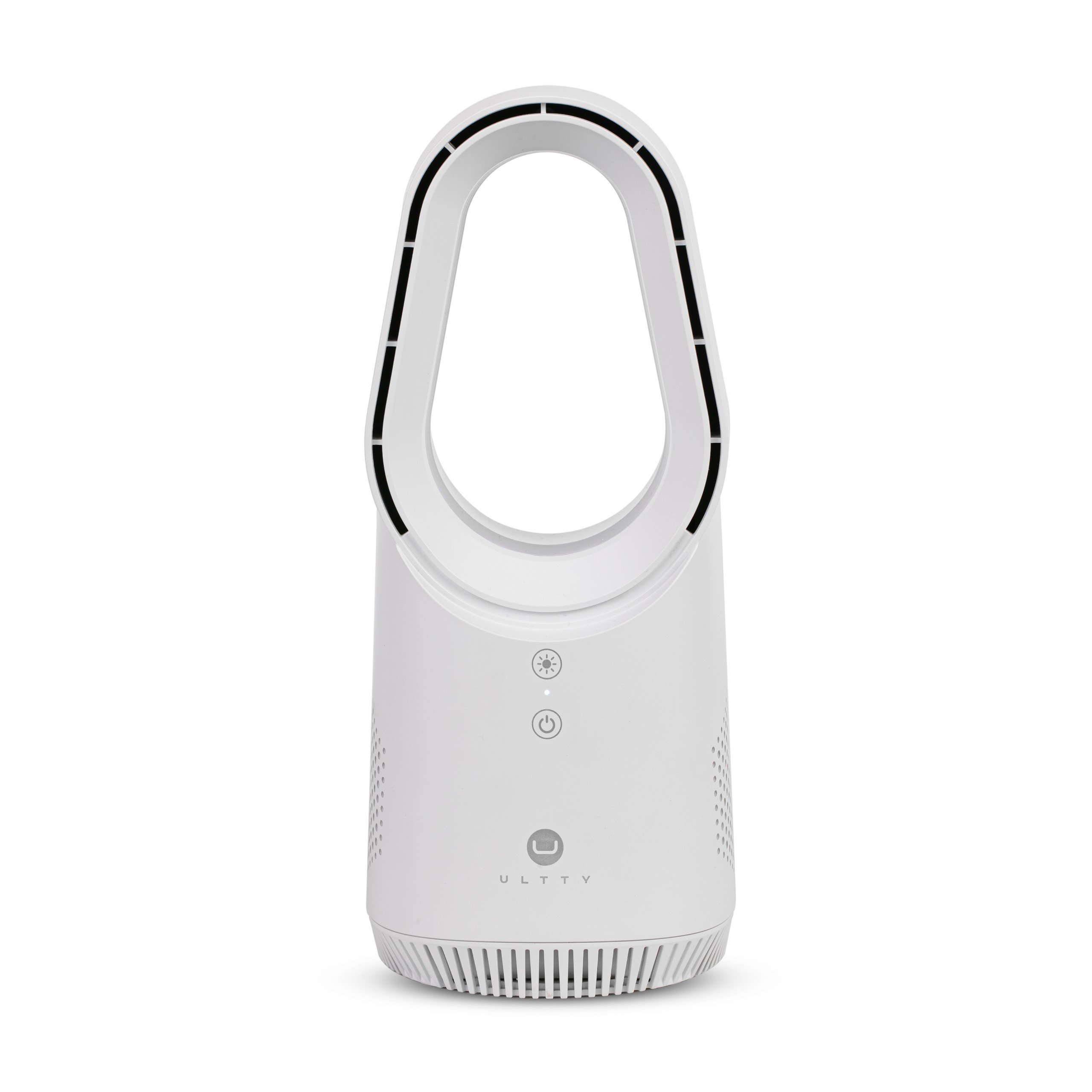 1. Giới Thiệu tổng quan quạt không cánh ULTTY PETIT LIDI - Thiết kế mini, sang trọng với viền bạc kết hợp màu trắng tinh khôi. Được tối ưu để phù hợp với bàn làm việc,