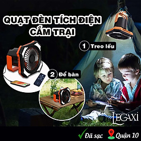 ✨Quạt mini tích điện treo lều tích hợp sạc điện thoại gấp gọn cắm trại, camping, dã ngoại, du lịch, picnic ngoài trời pin 10.000mAh Legaxi