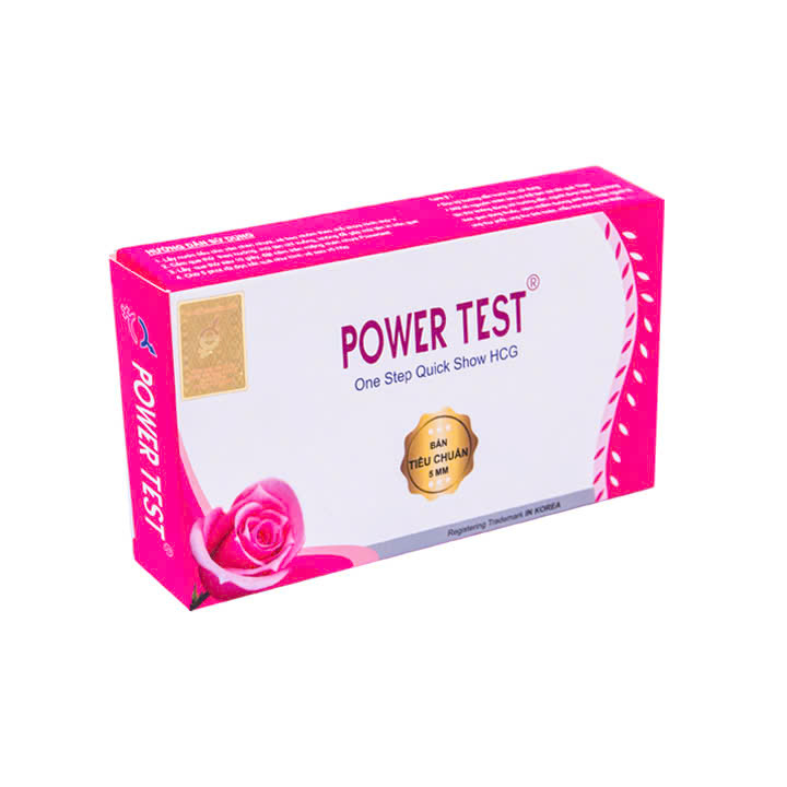 Tên sản phẩm: Que thử thai PowerTest Kích thước test: rộng 5mm Tính năng: Phát hiện thai sớm sau 6 -9 ngày trứng rụng ƯU ĐIỂM: Phát hiện thai sớm sau 6 -9 ngày