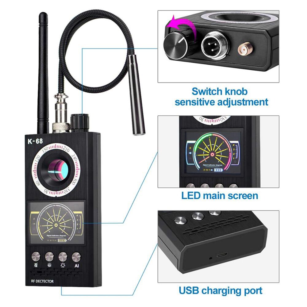 - Sức mạnh "bắt sóng" đỉnh cao: K68 ứng dụng công nghệ dò sóng vô tuyến tiên tiến, "bắt" chính xác mọi tín hiệu từ camera, máy ghi âm, thiết bị định vị, dù chúng có tinh vi đến đâu.