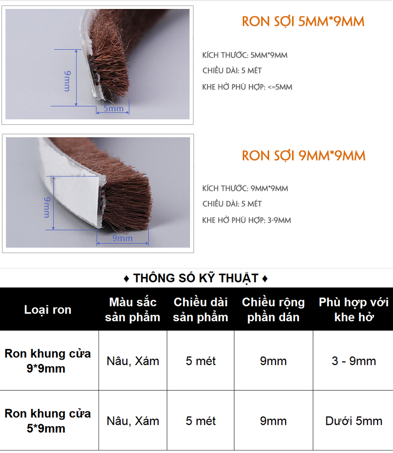 ✨Ron Sợi Chân Cửa Khung Cửa 5*9mm - 9*9mm - 15*9mm - 23*9mm Ngăn Bụi Côn Trùng Chống Ồn Legaxi