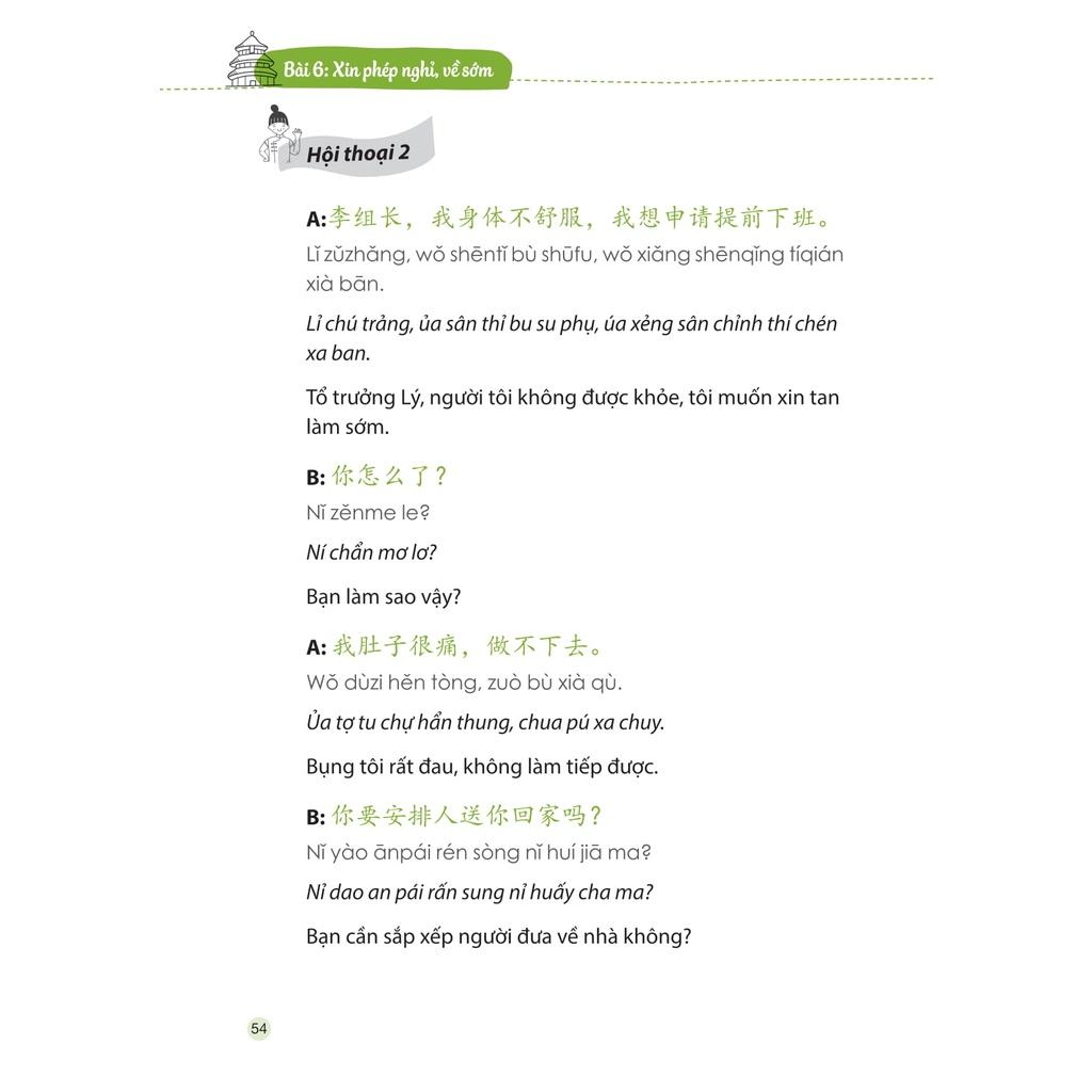 Ngoài việc cung cấp những mẫu câu giao tiếp hàng ngày (bao gồm phần chữ Hán, phiên âm chuẩn quốc tế, phần âm mô phỏng bằng tiếng Việt - âm bồi, phần dịch nghĩa), cuốn sách còn đưa ra rất nhiều công thức ngắn gọn với giải thích đơn giản, dễ hiểu, cùng hệ thống từ mới theo chuyên ngành giúp người học có thể vận dụng kiến thức một cách linh hoạt trong công việc và cuộc sống.