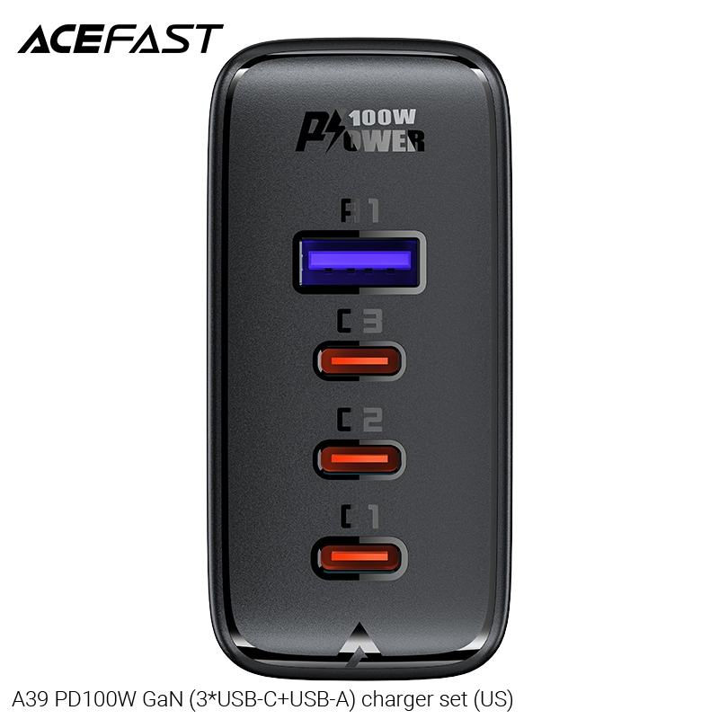✨Sạc Acefast PD 100W 4 cổng 3xUSB-C + USB-A (US) - A39 Hàng chính hãng Acefast
