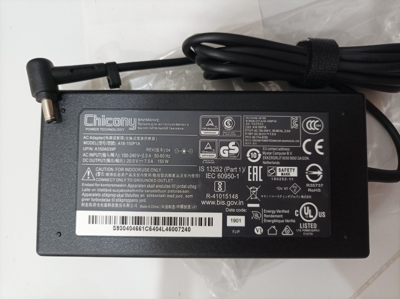 Tương thích: Đối với ASUS, MSI Đầu vào AC: 100 ~ 240V 50 ~ 60Hz Đầu ra DC: 20V 14A Công suất: 280W Kích thước đầu nối: 7.4 * 5.0mm (với chốt trung tâm) Dây