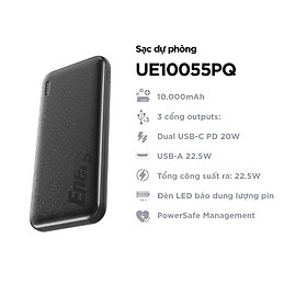 - Thiết kế nhỏ gọn, hiện đại - Dung lượng 10000mAh - Trang bị nhiều cổng sạc - Tốc độ sạc nhanh, an toàn khi sử dụng - Hao phí năng lượng thấp - Bộ