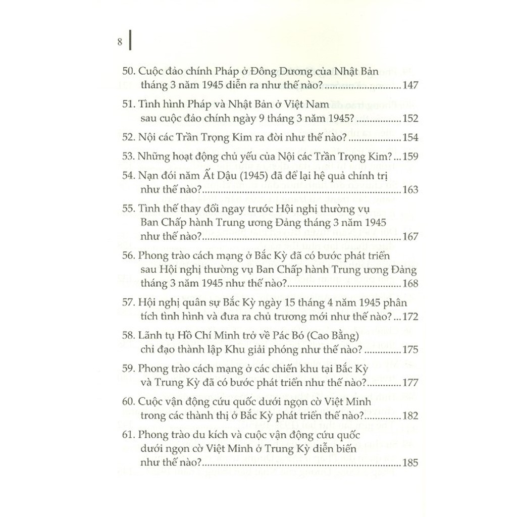 Sách - 100 Điều Nên Biết Về Cách Mạng Tháng Tám 1945 Tác giả Hà Nguyễn Nhà xuất bản NXB Thông Tin Và Truyền Thông Đơn vị phát hành NXB Thông Tin Và Truyền Thông Ngày xuất bản 11-2020 Số trang 300 Kích thước 14.5 x 20.5 cm Loại bìa Bìa mềm Nội dung "Dõi nhìn lịch sử hàng ngàn năm của dân tộc Việt Nam, cuộc cách mạng tháng 8 năm 1945 thực sự là một mốc son chói lọi. Cơn bão táp cách mạng ấy là kết tinh 15 năm đấu tranh kiên cường, gian khổ của phong trào cách mạng theo khuynh hướng vô sản trên khắp mọi miền tổ quốc, đã mạnh mẽ chấm dứt chế độ thực dân và chế độ quân chủ, mở ra một thời đại mới trong lịch sử dân tộc Việt Nam, kỷ nguyên độc lập dân tộc, bình đẳng và tiến bộ xã hội. 100 điều nên biết trong cuốn sách nhỏ này chắc chắn chưa phải là tất cả những gì cần biết và nên biết về cuộc vận động Cách mạng Tháng Tám năm 1945 trong lịch sử Việt Nam. Tuy nhiên, tác giả cuốn sách đã cố gắng giới thiệu được phần nào bức tranh toàn cảnh kỳ vĩ ấy. Hơn nữa, cuộc CMT8 năm 1945 của Việt Nam được đặt trong bối cảnh lịch sử của cuộc Chiến tranh Thế giới thứ hai (1939-1945), tạo ra cách nhìn biện chứng, kết hợp tiếp cận ""điểm"" và ""diện"" của tư duy lịch sử. Lần dở qua từng trang sách, độc giả sẽ được cung cấp những kiến thức vừa tổng hợp, vừa cụ thể, vừa bao quát, vừa chi tiết, cơ bản và cập nhật trong khả năng có thể của người viết về những vấn đề mấu chốt liên quan đến cuộc vận động CMT8 năm 1945."