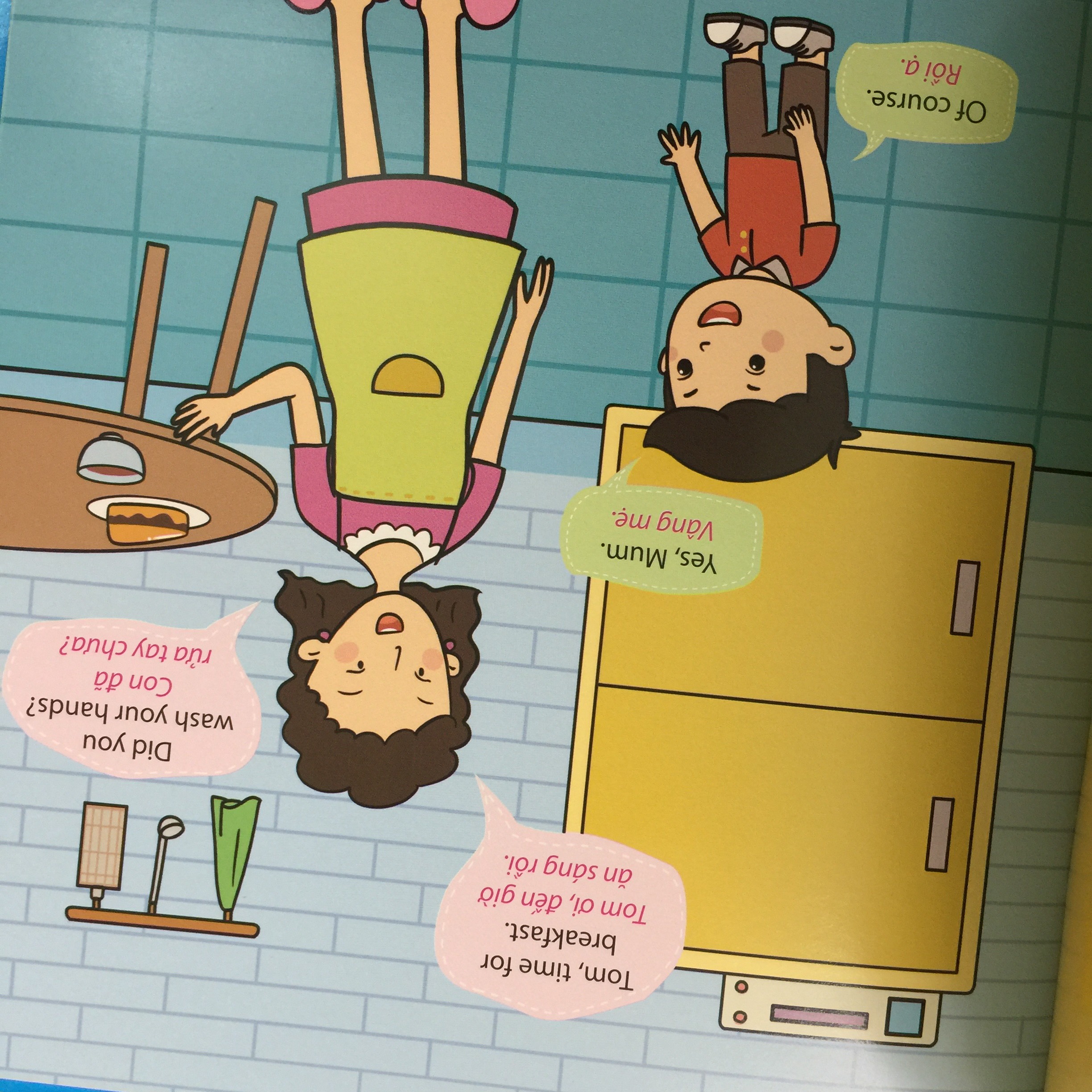 Qua từng cuốn sách con có thể giao tiếp cơ bản về những hoạt động trong ngày của con bằng tiếng anh với bố mẹ.