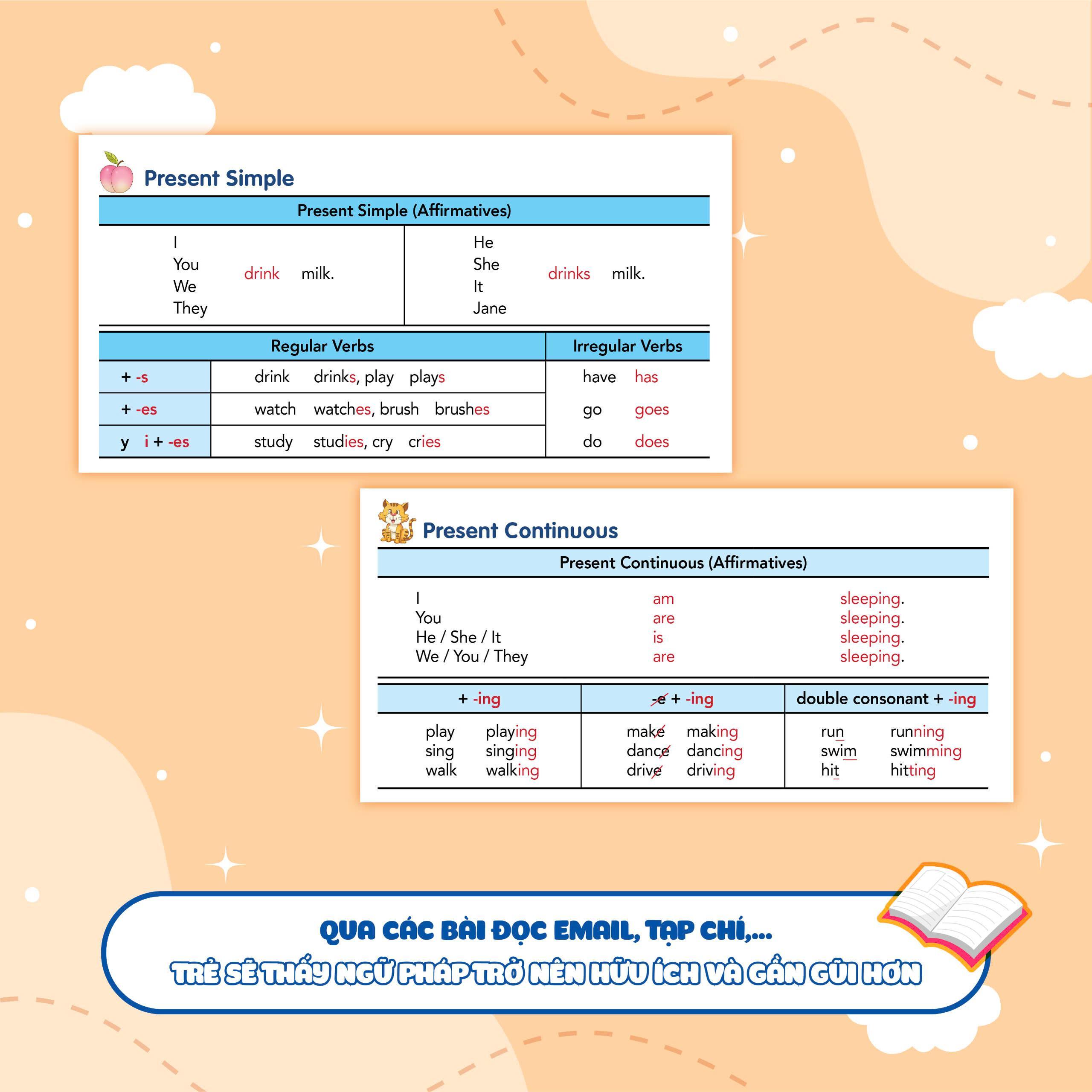 - Sách gồm 6 chương với 24 Unit, tổng hợp tất cả những chủ đề ngữ pháp hay nhất trong chương trình lớp 3 như: Danh từ & Mạo từ, Đại từ, động từ To-be, …Những kiến thức ngữ pháp nên tảng vững chắc đầu tiên này sẽ giúp con phát huy tối đa khả năng tiếng Anh khi lên những lớp cao hơn. ần thực hành cung cấp đa dạng các hoạt động, giúp các con tiếp cận từng bước với các quy tắc ngữ pháp. Các con có thể thực hành và tìm hiểu các quy tắc dử dụng ngữ pháp một cách chính xác.