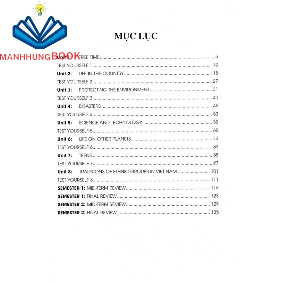 Ngoài ra, còn có phần Tự kiểm tra (Test yourself) ở cuối mỗi đơn vị bải học và các phần ôn tập giữa kì và cuối kì. Các phần này sẽ giúp các em học sinh tự kiểm tra lại những nội dung kiến thức mà mình đã học để kịp thời củng có những kiến thức còn chưa nắm vững.