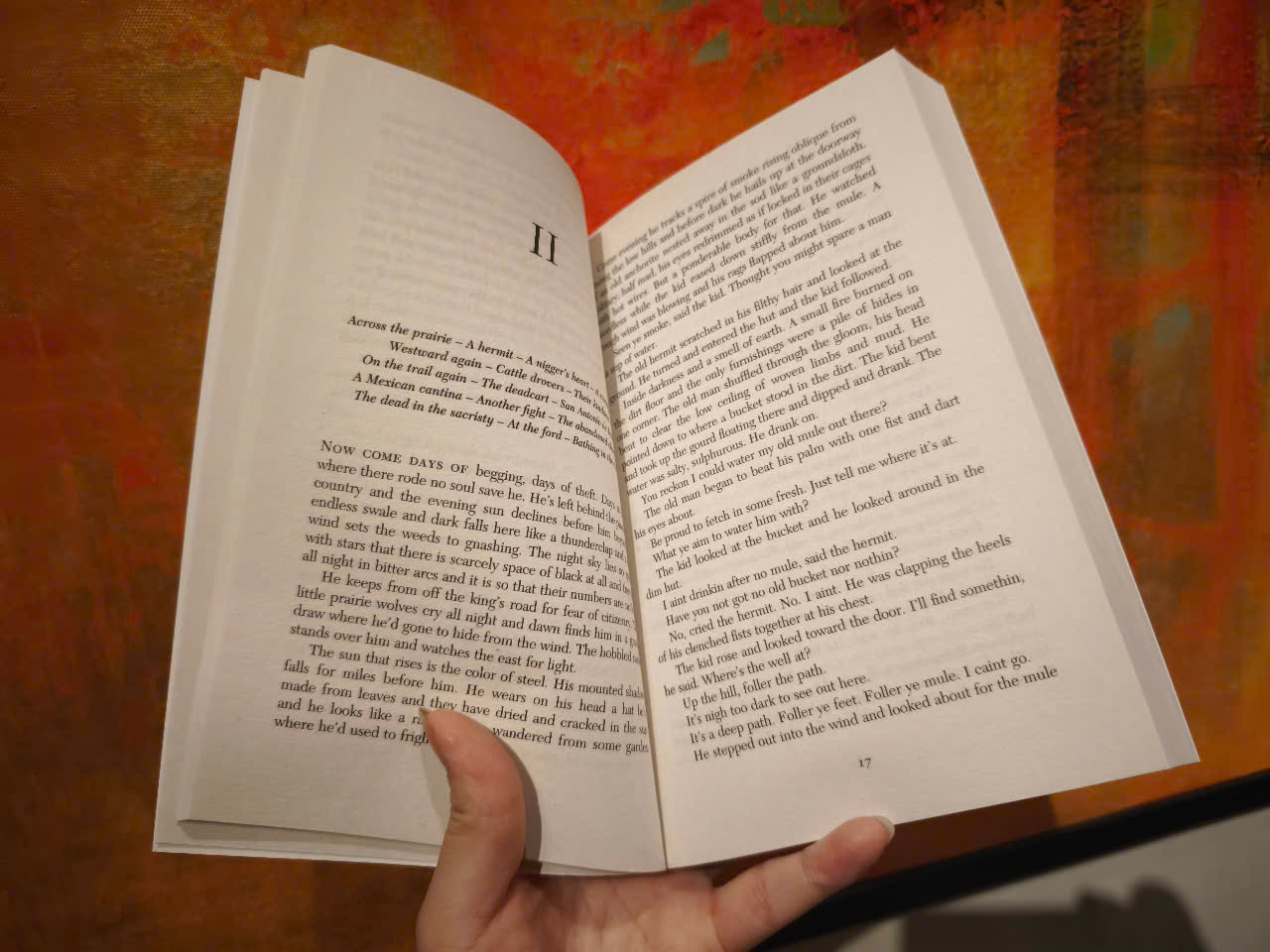 Through the hostile landscape of the Texas–Mexico border wanders the Kid, a fourteen year-old Tennessean who is quickly swept up in the relentless tide of blood.