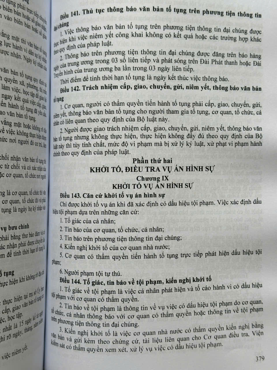 Cuốn sách gồm 9 phần, 510 điều, quy định trình tự, thủ tục tiếp nhận, giải quyết nguồn tin về tội phạm, khởi tố, điều tra, truy tố, xét xử và một số thủ tục