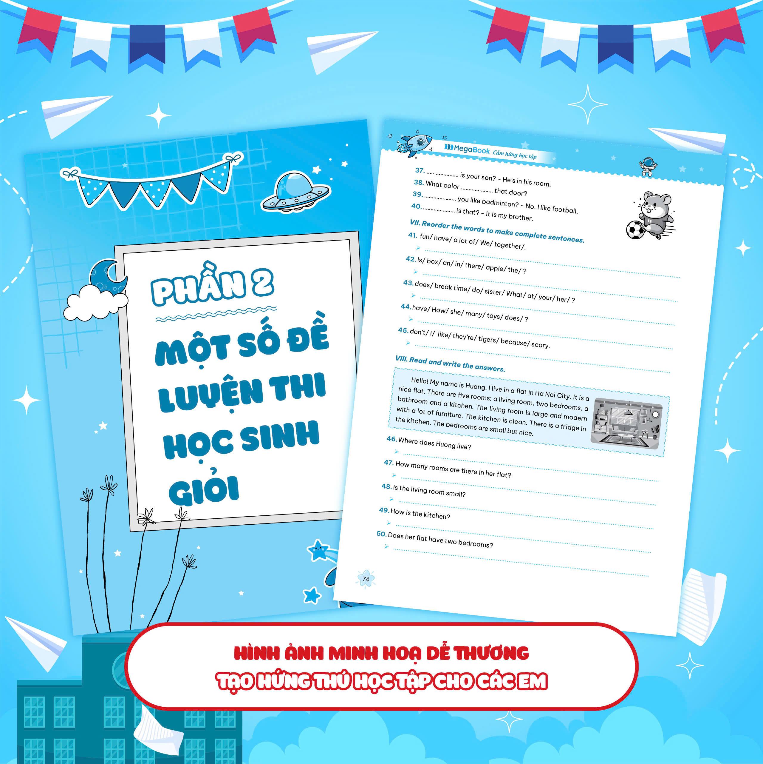 - Tổng hợp và mở rộng toàn bộ kiến thức với 20 Unit của chương trình học tiếng Anh lớp 3 theo Bộ Giáo dục & Đào tạo. Dưới mỗi phần lý thuyết là các bài tập vận dụng kèm lời giải, giúp các em dễ dàng ghi nhớ kiến thức vừa học và biết cách vận dụng cụ thể.