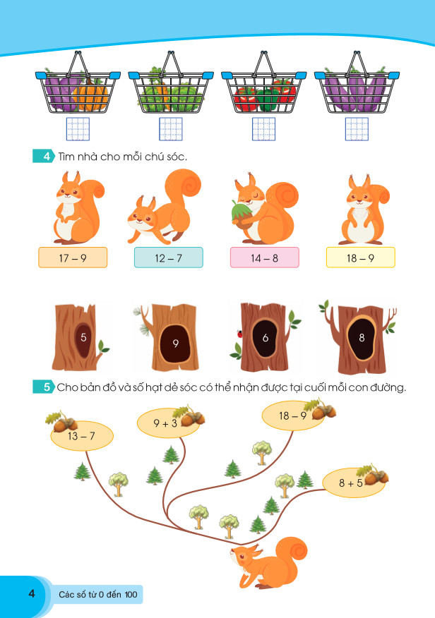 Mỗi chủ đề gồm nhiều bài tập đa dạng với các hình minh họa đầy màu sắc sẽ giúp các em hứng thú hơn trong học tập