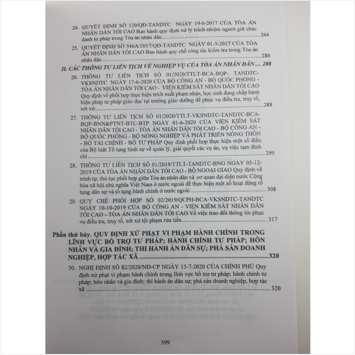 - Toàn bộ sách bìa mềm khổ lớn 20 x 28 cm phân phối bởi Nhà sách Nam Việt đều được bọc sách Plastic MIỄN PHÍ và xuất hóa đơn điện tử đầy đủ, nhanh chóng. …/… Nội dung cuốn sách gồm các phần chính sau: Phần thứ nhất. Tìm hiểu LUẬT TỔ CHỨC TÒA ÁN NHÂN DÂN VÀ VĂN BẢN HƯỚNG DẪN THI HÀNH Phần thứ hai. Tìm hiểu LUẬT HÒA GIẢI, ĐỐI THOẠI TẠI TÒA ÁN Phần thứ ba. Tìm hiểu LUẬT GIÁM ĐỊNH TƯ PHÁP Phần thứ tư. NGHỊ QUYẾT MỚI NHẤT CỦA HỘI ĐỒNG THẨM PHÁN TÒA ÁN NHÂN DÂN TỐI CAO Phần thứ năm. CÁC ÁN LỆ MỚI NHẤT CỦA TÒA ÁN NHÂN DÂN Phần thứ sáu. CÁC QUY ĐỊNH PHÁP LUẬT MỚI NHẤT CỦA TÒA ÁN NHÂN DÂN Phần thứ bảy. QUY ĐỊNH XỬ PHẠT VI PHẠM HÀNH CHÍNH TRONG LĨNH VỰC BỔ TRỢ TƯ PHÁP; HÀNH CHÍNH TƯ PHÁP; HÔN NHÂN VÀ GIA ĐÌNH; THI HÀNH ÁN DÂN SỰ; PHÁ SẢN DOANH NGHIỆP, HỢP TÁC XÃ Cảm ơn các bạn đã ghé thăm shop Nhà sách Nam Việt rất nhiều ạ!