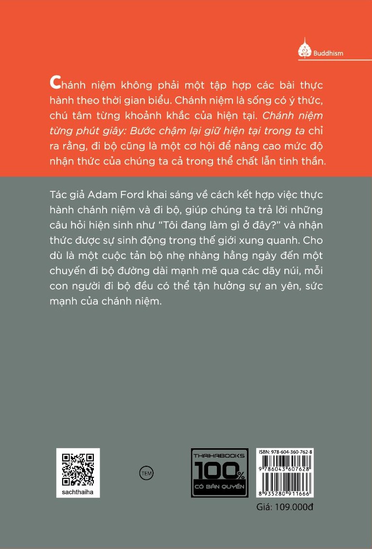 Đây là cuốn sách nằm trong bộ “Chánh niệm từng phút giây”. Cuốn sách gợi mở những suy nghĩ mới về việc đi bộ - một trong những hoạt động thú vị nhất mà chúng ta thực hiện mỗi ngày – như một cách tiếp cận có “chánh niệm” hơn với cuộc sống.